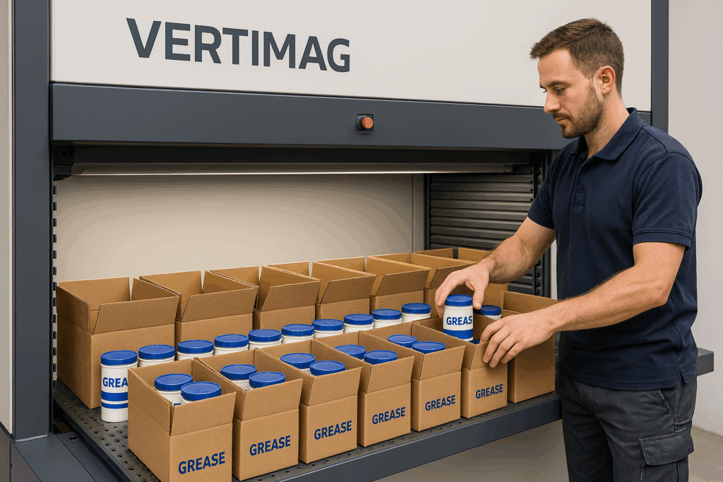 Firma handlowo-produkcyjna, zajmująca się produkcją preparatów wielofunkcyjnych i smarów, wdrożyła regały Vertimag w swoim magazynie wysyłkowym. Uruchomienie instalacji regałów wykonała firma Promag z Poznania. Przed wdrożeniem pracownicy ręcznie wyszukiwali komponenty na regałach, co powodowało błędy i opóźnienia w wysyłce zamówień do klientów.